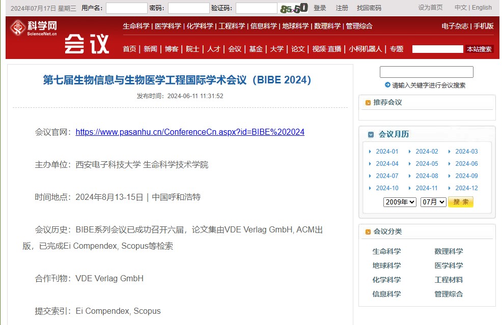 The 7th International Conference on Biological Information and Biomedical Engineering (BIBE 2024), organized by the School of Life Science and Technology, Xidian University will be held during August 13-15, 2024 in Hohhot, China. On behalf of the organizing committee of BIBE, we would like to invite experts, scholars, and researchers in related fields to submit manuscripts to the conference.
